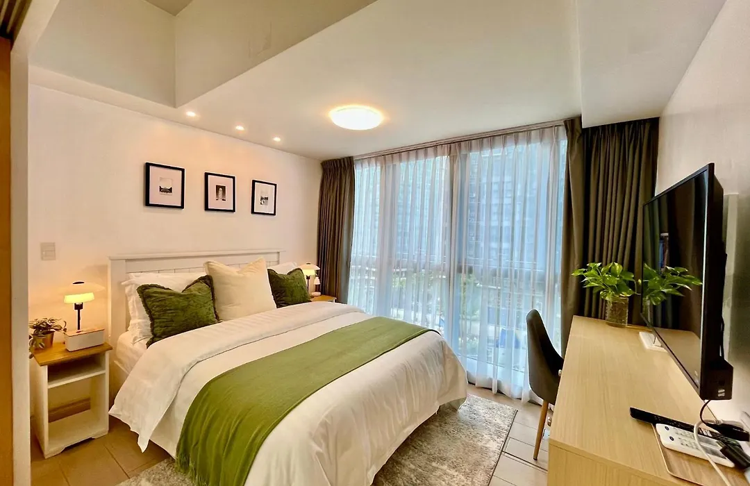 Cozy Place Across Mitsukoshi Mall apartment features views of the pool and includes a seating area and a kitchen with an air conditioner. Enhancing your comfort, a bidet can be found at the apartment. Furthermore, a hairdryer and bath sheets is available.